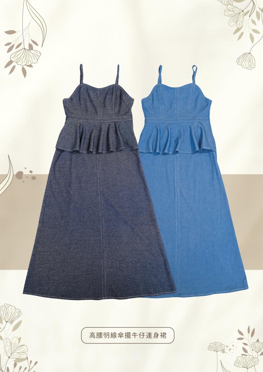 高腰明線傘擺牛仔連身裙 OMEOP262