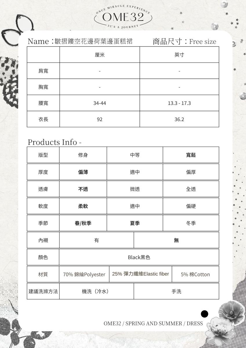 皺摺鏤空花邊荷葉邊蛋糕裙 OMESK371