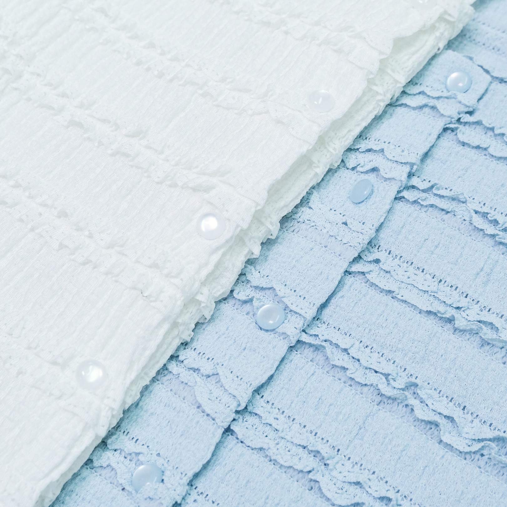鏤空花邊皺摺扣鈕圓領短袖上衣 WTP3090