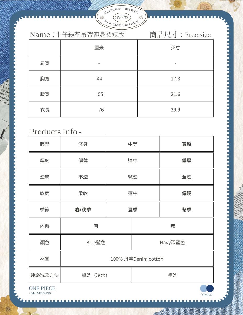 牛仔緹花吊帶連身裙短版 OMEOP402