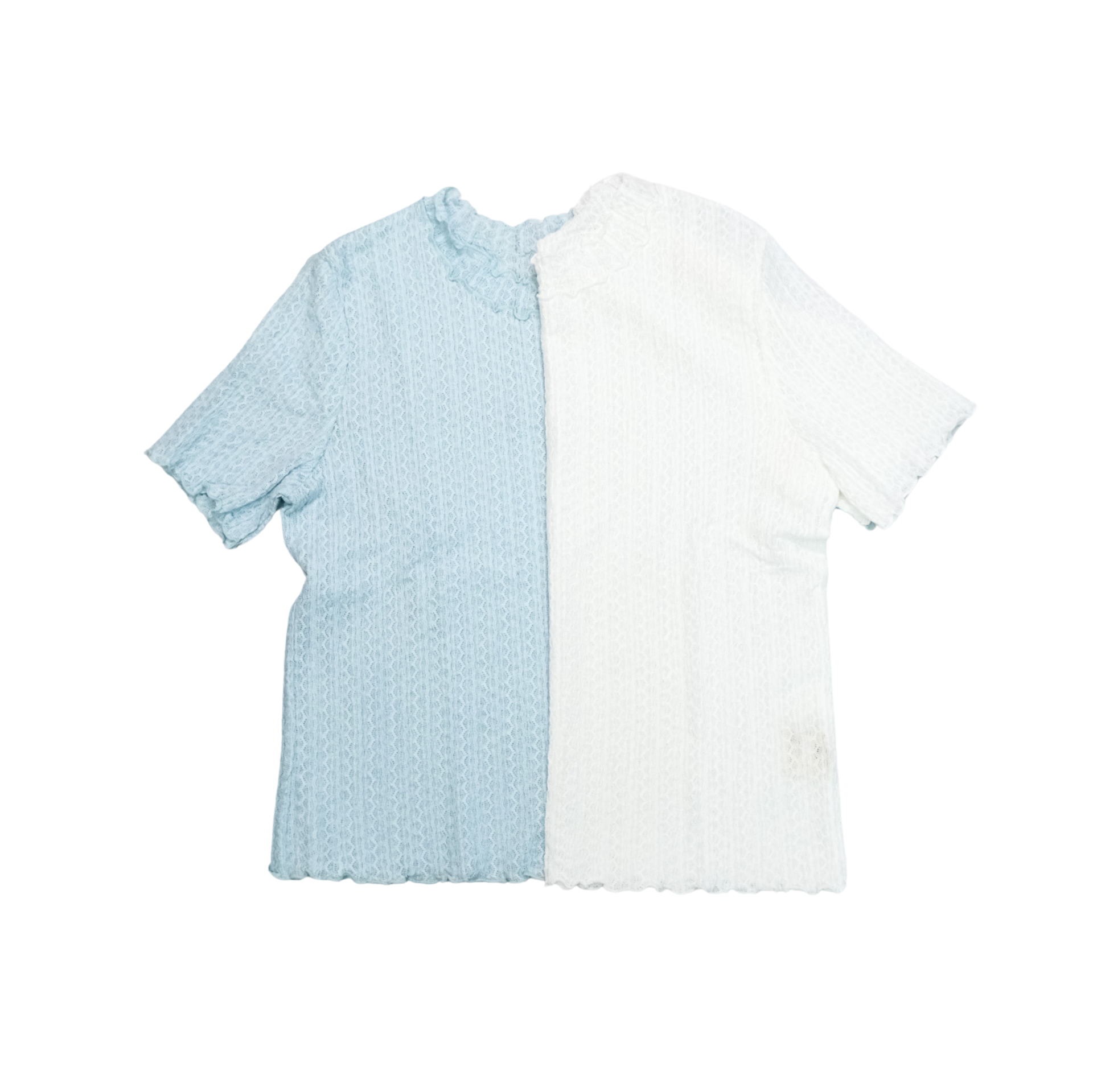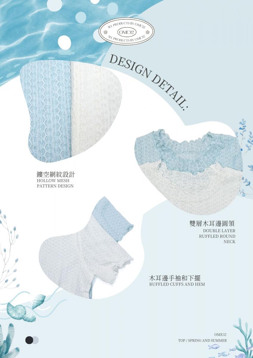 圓領木耳邊鏤空網紋上衣 OMETP405